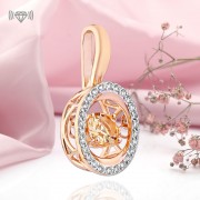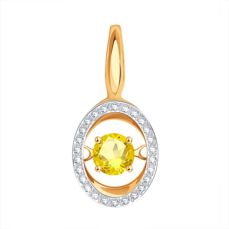Цитрин Цирконий. Нежный кулон из розового золота 14 карат, украшенный очаровательным танцующим цитрином и сверкающими