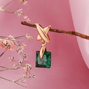 Центральный камень представляет собой зеленый кубический цирконий квадратной огранки. Он впечатляет своим насыщенным цветом, высокой прозрачностью и блестящим светоотражением. Контраст золота и насыщенного зеленого тона придает кулону выразительный и гармоничный вид.