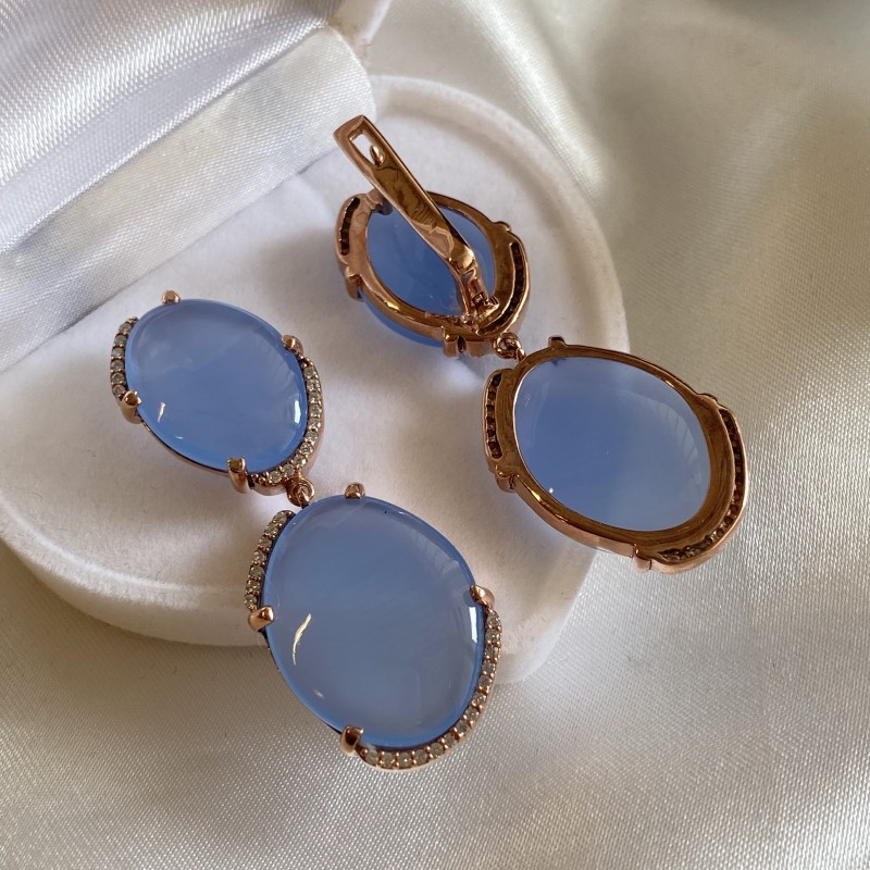 Позолоченные серьги, висящие красивые серьги из золота, стержного стерлингового серебра, украшенные очаровательным Чальзедоном и Цирконием! Такие серьги испускают шикарные и неотразимость. С ними вы будете привлекательны в каждом наряде!