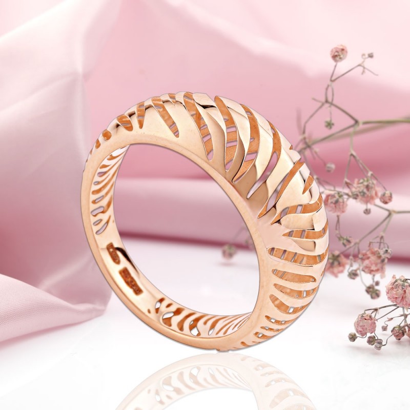 Zlatý prsteň červené zlato 585. Objemný zlatý prsteň vyrobený z 585 ruského červeného zlata. Zdôrazňuje ženskosť, eleganciu a dobrý vkus. Očarujúci darček vyrobený z 585 červeného zlata pre vašich blízkych!