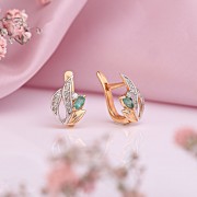 Elegantné zlaté náušnice z červeného/bieleho zlata 585 s diamantmi a krásnym smaragdom.