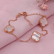 Odvážny a romantický zlatý náramok vyrobený z 585 červeného zlata s matkou -of -pearl. Kotvená tkaling