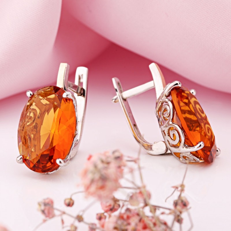 Strieborné náušnice 925 ° so zlatom v Nemecku Kúpte zirkónia. Strieborné náušnice so zlatými akcentmi a krásnou oranžovou zirkónmi. Takéto náušnice sú príjemným doplnkom každého oblečenia. Krásny darček pre svojho milenca, dáva jej nezabudnuteľné pocity!