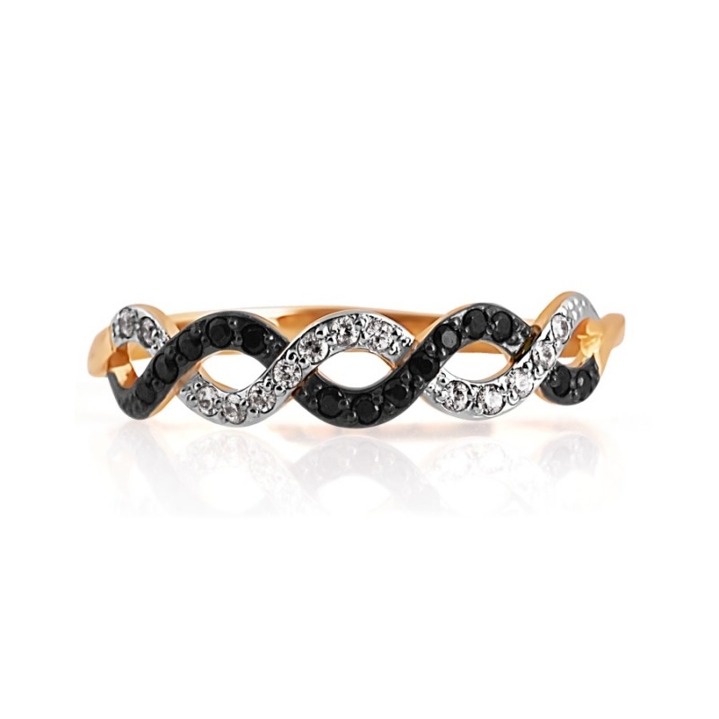 Hravý prsteň z červeného/bieleho zlata 585° zdobený 14 zirkónmi ¢ 1,0 mm, 14 zirkónmi (čierne) ¢ 1,0 mm