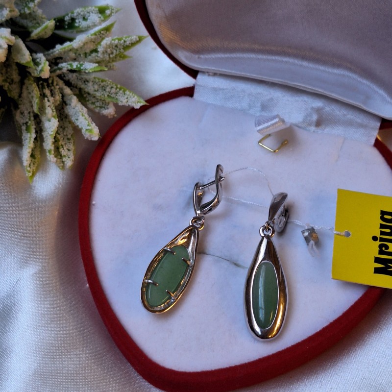 Náušnice 925 strieborné visiace nefrit. Nádherné náušnice vyrobené zo striebra rýdzosti 925, zdobené očarujúcim nefritom! Z takýchto náušníc vyžaruje šik a neodolateľnosť. S nimi budete príťažlivá v každom outfite! Rhodiované striebro 925!