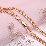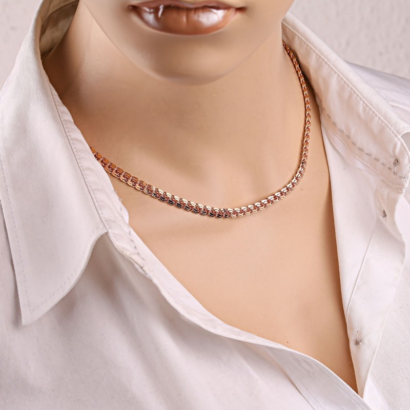 Half Chain and Bracelet Redgold 585 Bismarck. Klasický zlatý reťazec vyrobený z 585 červeného ruského zlata s diamantovým rezom. Táto veľká reťaz zdobí krk aj hruď mužov a dámy. Reťaze vyrobené zo zlata nastavujú potrebný prízvuk na obrázku a upozorňujú na bohatstvo a luxus príslušenstva, pretože zlato je krásne, štýlové, elegantné a drahé.