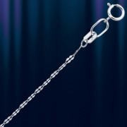 Plochá kotviaca retiazka z bieleho zlata. Plochá retiazka z bieleho zlata 585 krásne zdobí krk pôvabnej ženy. Vďaka diamantovému spracovaniu článkov reťaze výrobok vyzerá elegantne a priťahuje obdivné pohľady ostatných, pretože sa trblieta a trblieta na slnku.