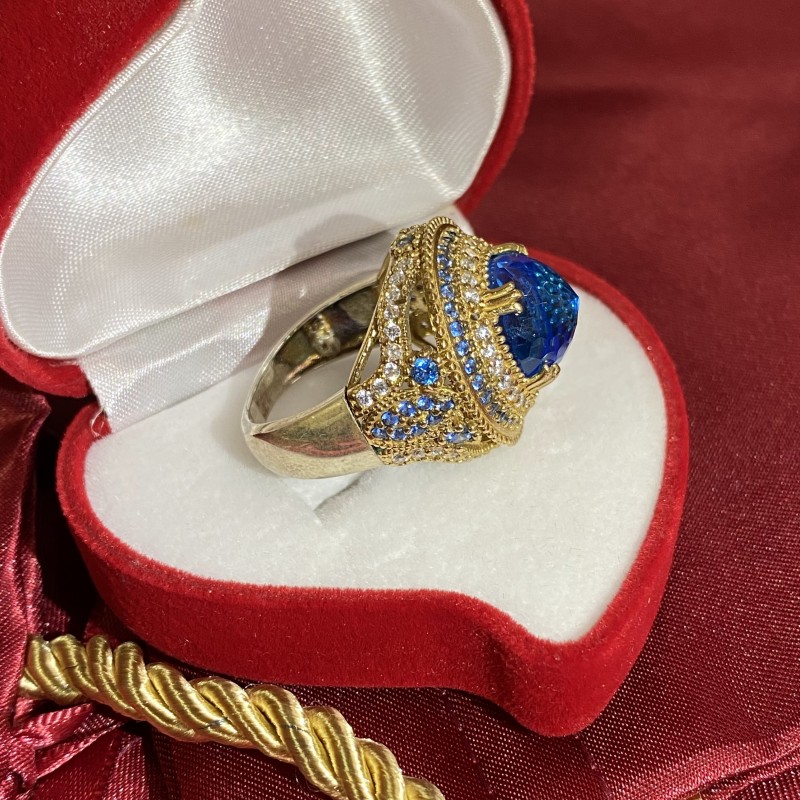 Nádherný jemný prsteň s očarujúcim topásom a zirkónmi v krásnom striebornom ráme z pozláteného striebra 925.
