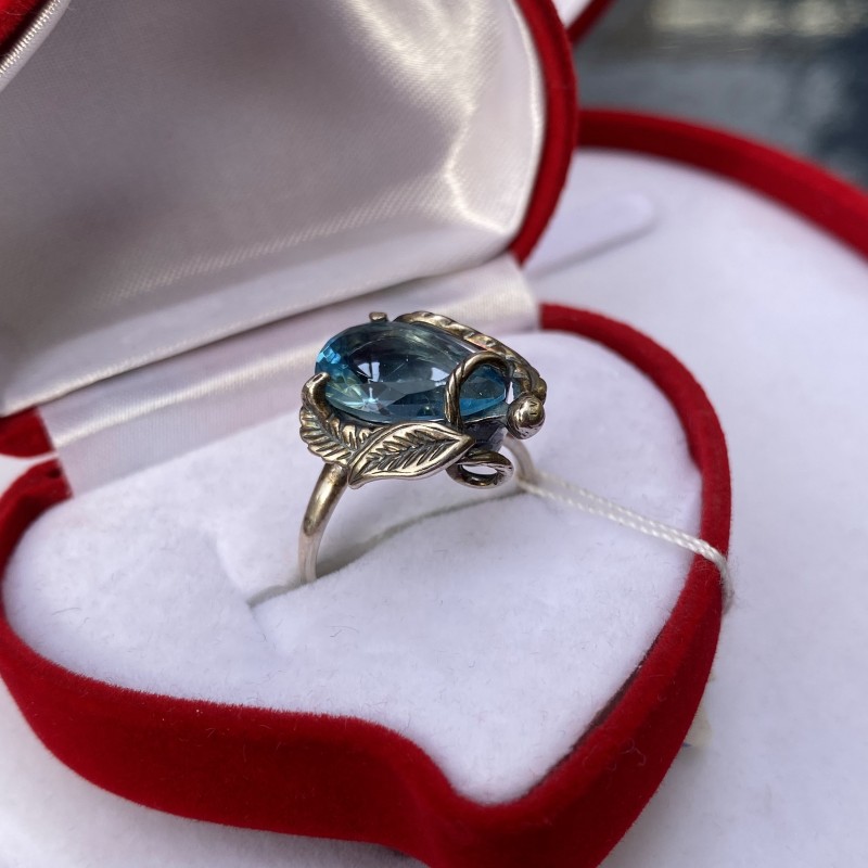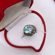 Nádherne jemný prsteň s očarujúcim veľkým topásom. Prsteň vyzerá lakonicky a štýlovo v krásnom ráme z čierneho striebra rýdzosti 925. Aristokratický lesk modrého topásu odhaľuje všetku majestátnosť nebeského odtieňa. Obdivujte ho a všimnete si, ako sa na každom kroku zviditeľňujú nové horizonty. Táto úžasná kombinácia elegancie, ľahkosti a individuality dáva dekorácii zvláštne čaro a inšpiráciu. Takže môžete vždy čerpať inšpiráciu a zbierať obdivné pohľady.