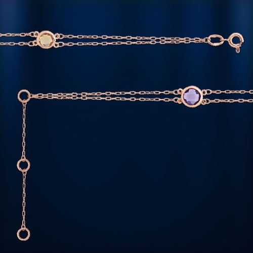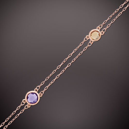 Náramok z 585° červeného zlata s ametystom a citrínom