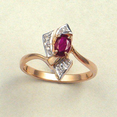 Prstan iz rdečega ruskega zlata 585° (4 briljantno brušeni diamanti 0,04 ct in rubin 0,56 ct.). Trajanje dostave blaga od naročila od 10 do 14 dni. Ta prstan lahko naročite tudi s safirji ali smaragdi, v tem primeru se dobavni rok podaljša za 3 tedne. Za naročilo uhanov z drugimi kamni oddajte pisno naročilo po e-pošti: auditor@online.de