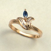Prstan iz rdečega ruskega zlata 585° (8 briljantov 0,07 in safir 0,20). Trajanje dostave blaga od naročila od 10 do 14 dni. Ta prstan lahko naročite tudi s smaragdi ali rubini, v tem primeru se dobavni rok podaljša za 3 tedne. Za naročilo uhanov z drugimi kamni oddajte pisno naročilo po e-pošti: auditor@online.de