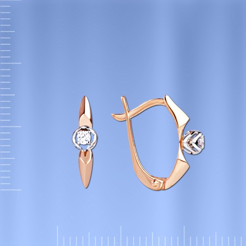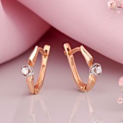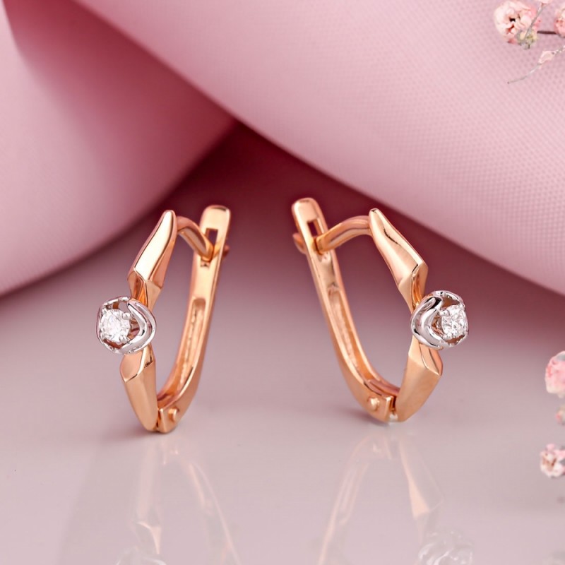 Uhani iz ruskega rdečega/belega zlata 585°. Uhani iz rožnatega zlata, diamanti. Očarljivi uhani iz 18k rožnatega zlata s poudarki iz belega zlata, ki odlično poudarijo neustavljivost diamantov - razkošno darilo za vaše najdražje. Leta tečejo, moda se spreminja, a zlati uhani še vedno navdušujejo s svojo svežino in lepoto.