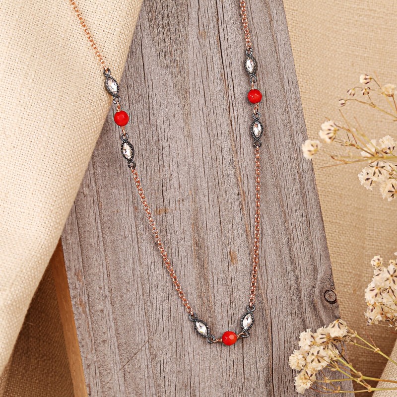 Zaprtje Karabinerja zagotavlja varno držanje in visoko udobje. Vsaka ogrlica je ročno izdelana, zaradi česar je ekskluziven kos nakita, ki poudarja njen slog in je popoln kot darilo.