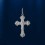 Obesek v obliki križa iz srebra 925° prevlečenega z rodijem. Višina z ušesom približno 32,0 mm, širina približno 17,0 mm