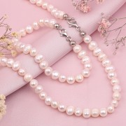 Odlična biserna ogrlica, okrašena z naravnimi gojenimi biseri, ki so umetno gojeni v normalnih pogojih! Vsak biser ima svojo edinstveno obliko, dar narave!