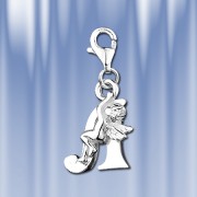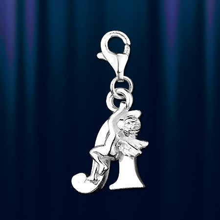 Nežen obesek v obliki črke “A” in figure angela iz srebra 925 s karabinom. Zaponka - karabin vam omogoča, da obesek pritrdite na zapestnice, ogrlice, uhane ali pa obesek uporabite kot obesek za ključe. Vzmetenje je enostransko, polvolumetrično. Prevlečeno z rodijem!