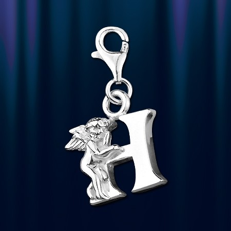 Srebrn obesek črka "H" z likom angela . Srebro 925°. Višina z ušesom 28 mm.