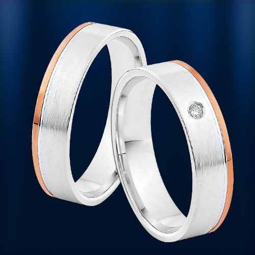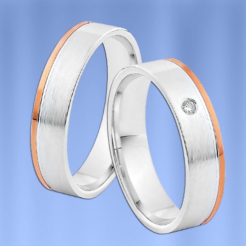 Dvobarvni prstan iz rdečega in belega zlata 585° (mat / sijoče) z diamantom (1 x 0,02 ct)