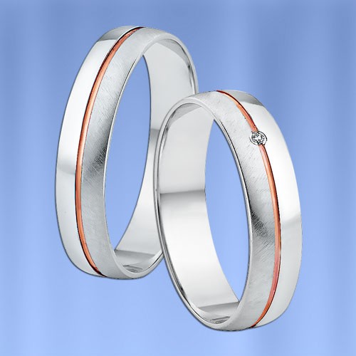 Dvobarvni prstan iz rdečega in belega zlata 585° (mat / sijoče) z diamantom (1 x 0,005 ct)