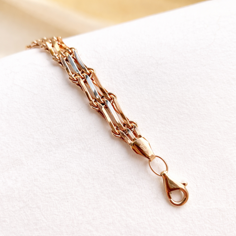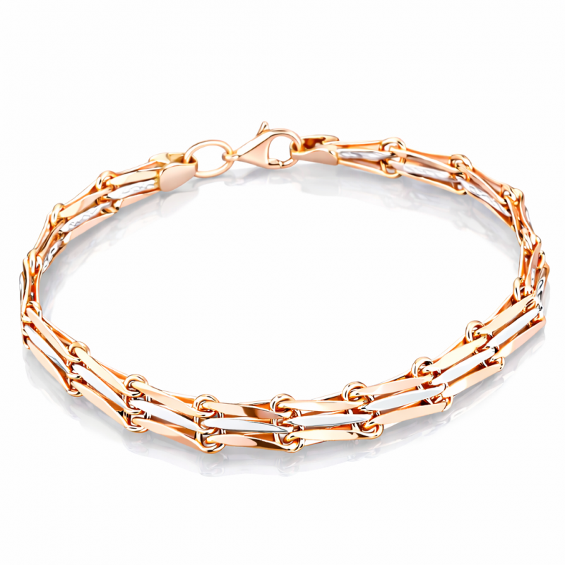 Kupite rusko zlato zapestnico. Zlata zapestnica iz rdečega in belega zlata 585