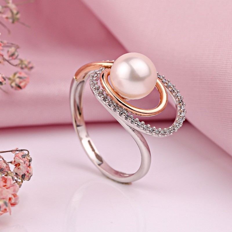 Zlat prstan iz ruskega zlata z biseri cirkonij. Očarljiv in nežen prstan iz belega in rdečega zlata 585, okrašen z očarljivim in bleščečim cirkonijem ter čudovitim gojenim biserom. Poudarja ženstvenost, eleganco in dober okus. Očarljivo darilo za vaše najdražje!