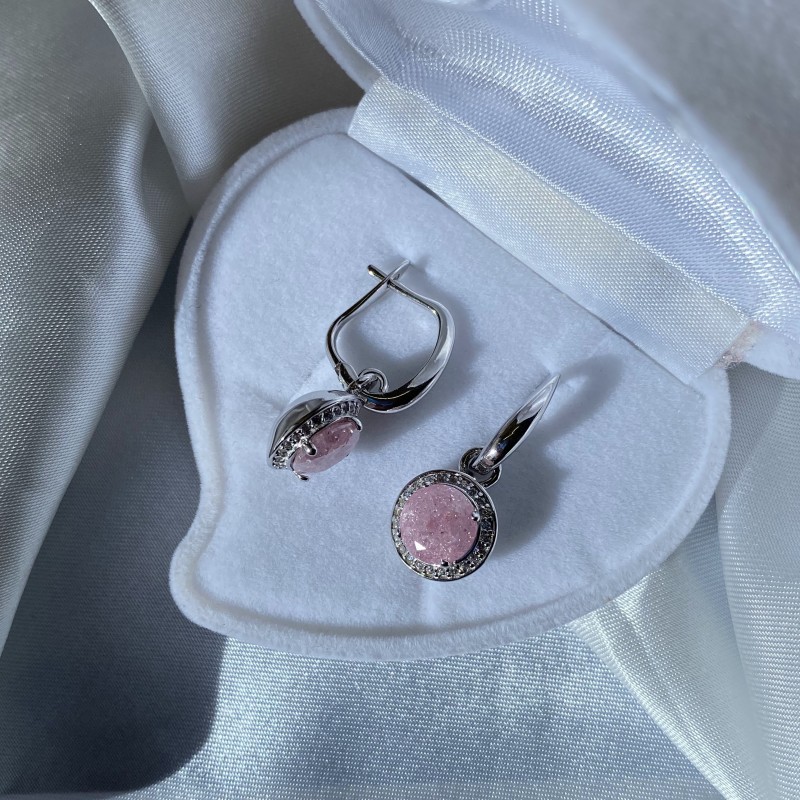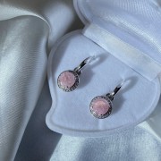Očarljivi uhani iz srebra 925, okrašeni z bleščečim cirkonijem in rožnatim kremenom.
