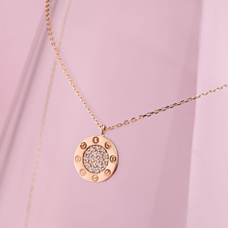 Zlata ogrlica iz rdečega zlata 585 cirkonij. Nežna in romantična ogrlica iz rdečega zlata 585 s cirkoni. Tkanje sidra