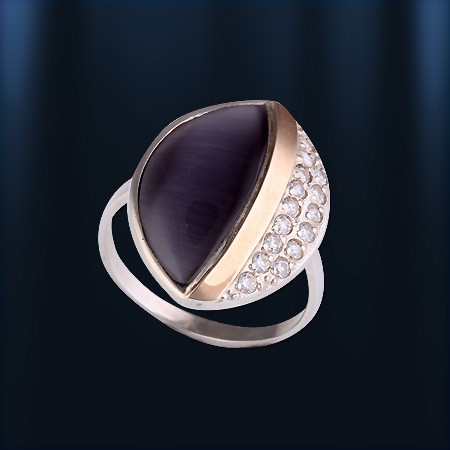 Prstan iz srebra 875 in zlata 375. Vložek: Ulex (10 x 22 mm), cirkonij ¢ 1 mm