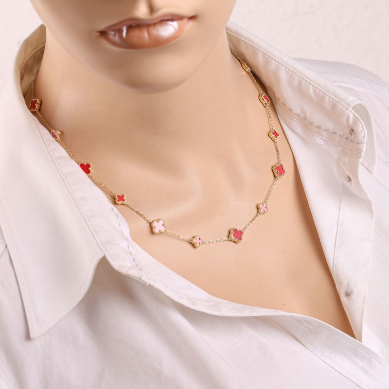 Zlata verižica rumena zlata koral. Ta ogrlica iz rumenega zlata 585 združuje toplo eleganco, živahne barve in lepoto naravnih plemenitih materialov. Fini štirilistni elementi iz pravega koralnega kamna zasijejo v intenzivnih rdečih tonih in dajejo nakitu izrazit, ženstven pridih. Naravna pestrost barv koral predstavlja energijo, živahnost in milino – paša za oči, ki oplemeniti vsak stil.