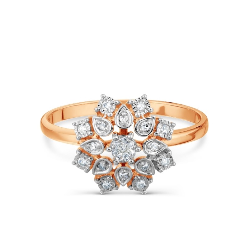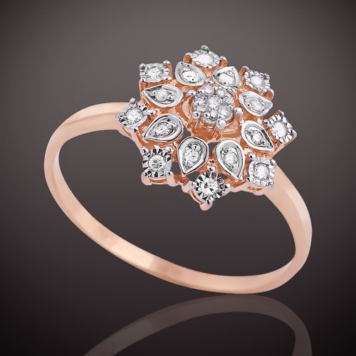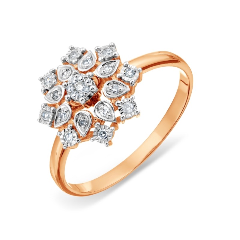 Прстен од руског црвеног злата 585º са 8 брилијантних брилијаната 0,025 карата 173А 17(Х), 7 брилијантних брилијаната 0,02 карата 173А 17(Х), 8 брилијантних брилијаната 0,073А брилијанта 117 карата. - брушени дијамант 0,012 карат 173А 17(Х)< бр />