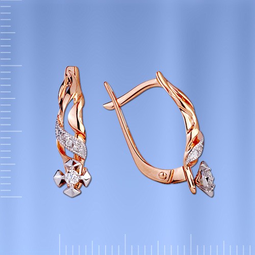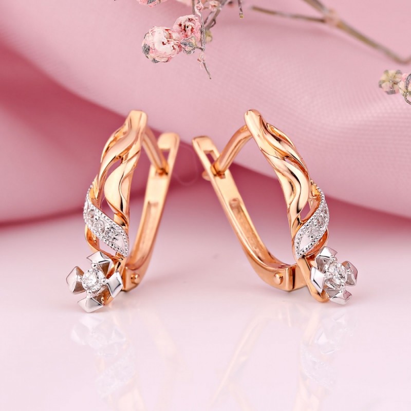 Златне минђуше од црвеног злата 585 са дијамантима. Елегантне златне минђуше од црвеног злата 585 са акцентима од белог злата, које на посебан начин подвлаче лепоту дијаманата!<бр />