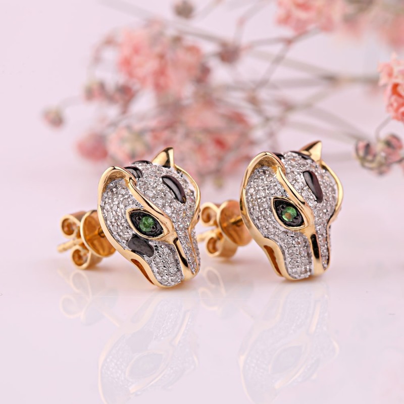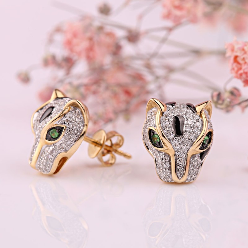 <стронг>СОКОЛОВ стронг>Купите минђуше од 14 каратног злата са дијамантима и зеленим