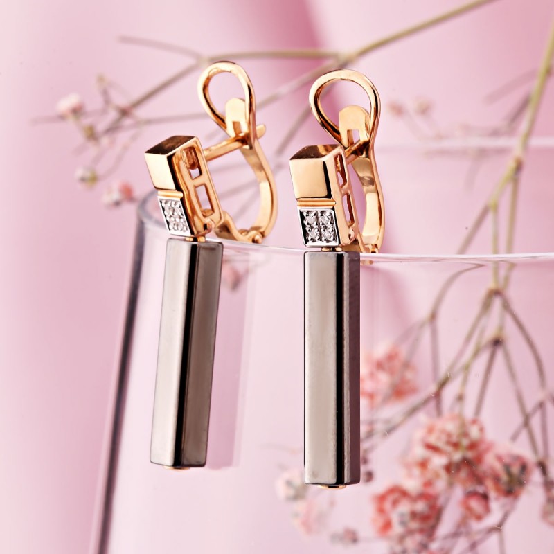 <стронг> соколов стронг> црвено злато 585 минђуше са дијамантском керамиком. Родијум-плоча! Граце, елегантни носачи ваљка од црвеног злата 585 са белим златним акцентима и уметцима из шармантних дијаманата и металик керамике. Идеално заокруживање слике стилске жене која воли да мења свој изглед минђуше са дијамантима са 585 црвеног злата. Овај изражајни и софистицирани додатак погодан је за жене свих узраста који цене занимљиве дизајне и беспрекорно камење. <Бр />