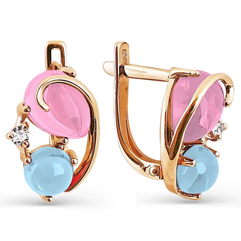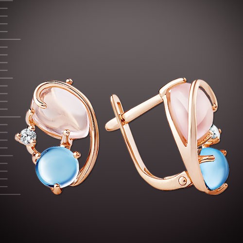 Еар прстенови су израђени од руског црвеног / белог злата 585 ° са 2 топаса ¢ 5,0 мм 0,75 цт, 2 кварц 8,0 к 6,0 мм, 1