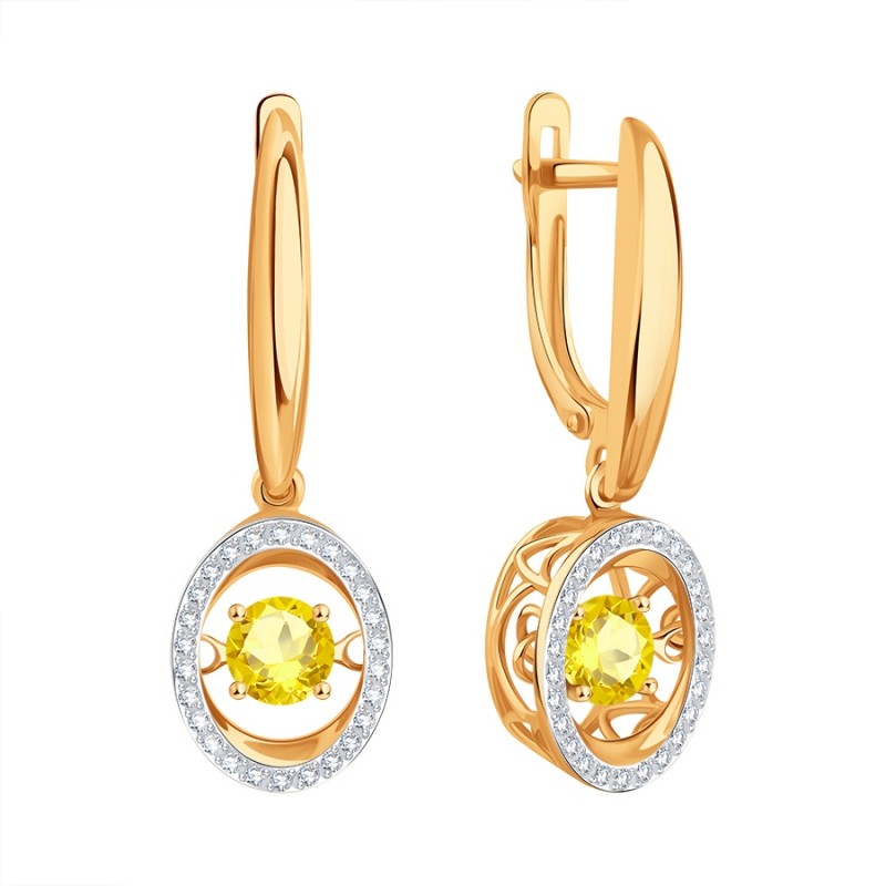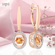 Златне минђуше 585 Данцинг Цитрине Цирцониа. Дивне минђуше од 14-каратног руског црвеног злата са уметцима од деликатног плесног цитрина и кубног цирконија у оквиру од белог злата. Одличан избор који ће подићи добро расположење и учинити да се осећате неодољиво.<бр />