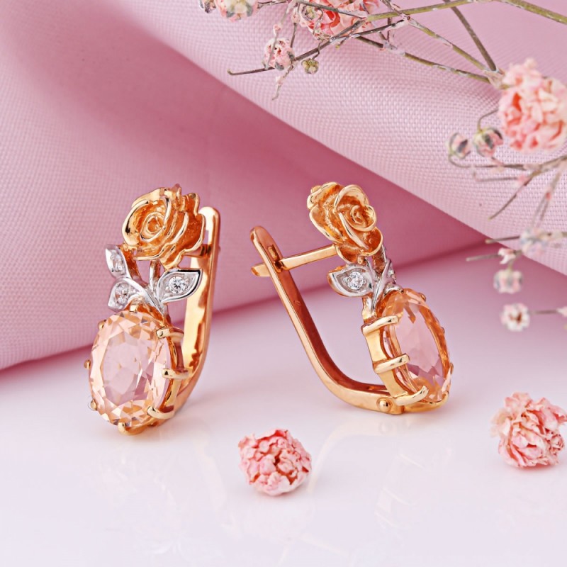 Златне минђуше од руског злата са цирконијом Морганит. Граце, елегантне минђуше од црвеног злата 585 са белим златним акцентима, морганитом и блиставим цирконијом. Идеално заокруживање слике стилске жене која воли да мења њен изглед минђуше са цирконијом од 585 рус злата. Ова експресивна и софистицирана додатна опрема погодна је за жене свих узраста који цене занимљиве дизајне и беспрекорно камење. <Бр />