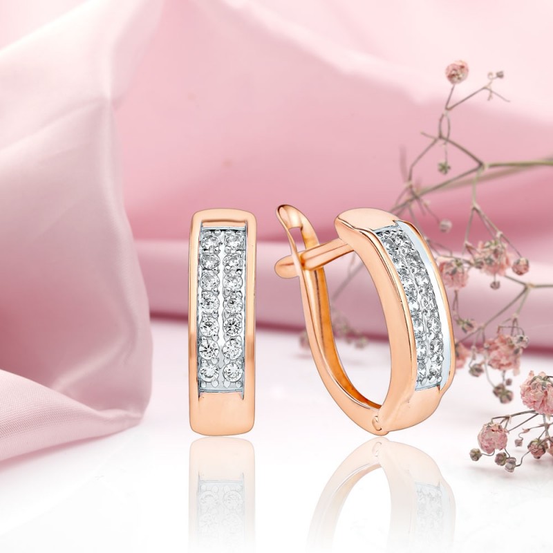 Прелепе минђуше од белог/ружичастог злата 585 узорка, украшене цирконијумом. Ове блиставе минђуше ће вас одушевити лепотом и елеганцијом.<бр />