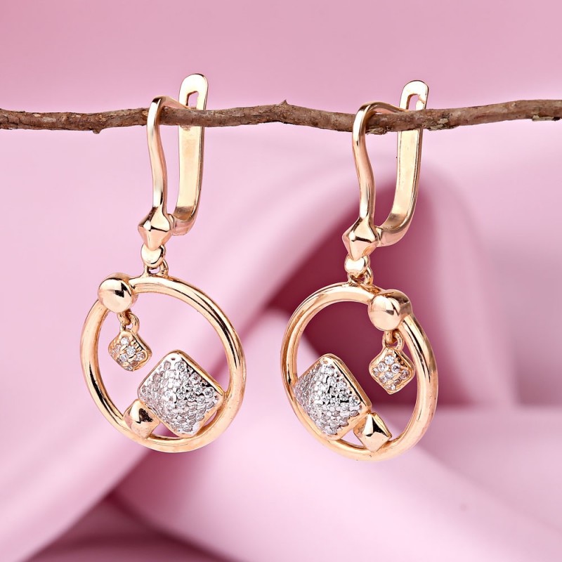 Минђуше од руског црвеног/белог злата 585 са фијанитима<бр /> Висина око 38,0 мм. Ширина цца 20,0 мм<бр /> <бр /> Реч је о накиту направљеном у Русији или земљама бившег СССР-а од правог, пуног црвеног злата 585, произведен је Финенесс.<бр /> Сваки производ има жигове које је тестирала Државна канцеларија за ознаку Руске Федерације. Поред тога, сваки комад накита је опремљен запечаћеним сертификатима произвођача.<бр /> Чувајте се фалсификата!<бр /> <бр /> Купујте без ризика!<бр /> Регистровани смо као комерцијални продавац, тако да можете вратити робу коју сте добили без навођења разлога у року од 14 дана тако што ћете вратити робу и добити повраћај новца. (Наши услови и одредбе)<бр /> <бр /> <бр />