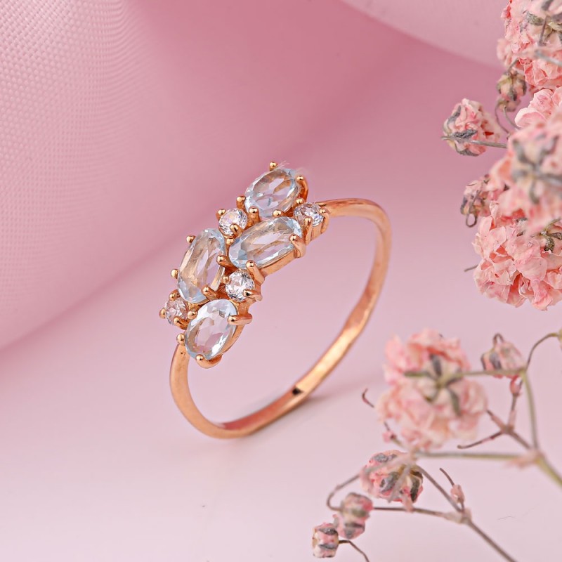 Златни прстен од руског црвеног злата 585. Топаз и цирконијум. Чини се да је експресивна и деликатна декорација створена како би свом власнику дала софистицираност, сјај и ведро расположење сваког дана!<бр />