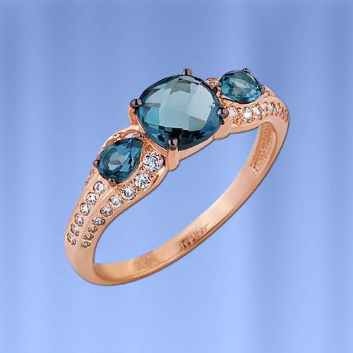 Прстен је направљен од руског црвеног злата 585° са <спан итемпроп="маинЦонтентОфПаге">Топазом Лондонспан><спан итемпроп="маинЦонтентОфПаге"><спан итемпроп="десцриптион"> спан>спан>( 6,0 к 6,0 мм 2,18), <спан итемпроп="маинЦонтентОфПаге">2 топаза спан><спан итемпроп="маинЦонтентОфПаге"><спан итемпроп="десцриптион"> спан>спан>(4,0 к 3,0 мм 0,68) 12 фианита 0,8 мм 0,012, 24 фианита 1,0 мм 0,048, 4 фианита 1,5 мм 0,024, 8 фијанита 1,25 мм 0,024<бр />