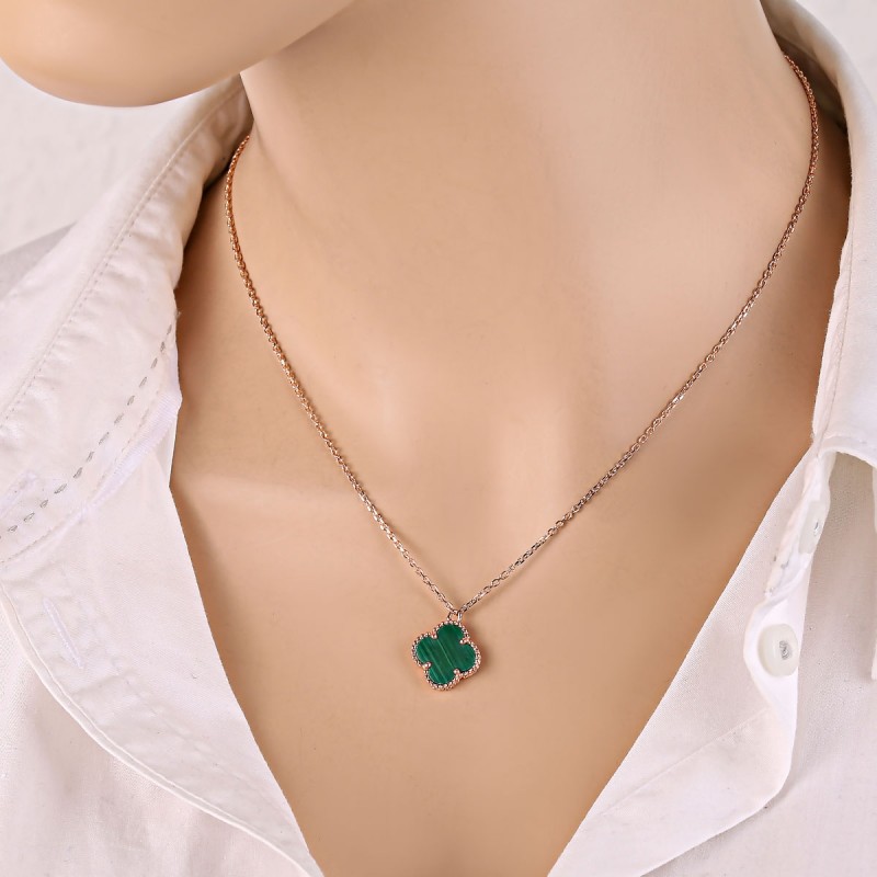 Нежна и романтична златна огрлица од црвеног злата 585 са малахитом. Ткање сидра<бр />