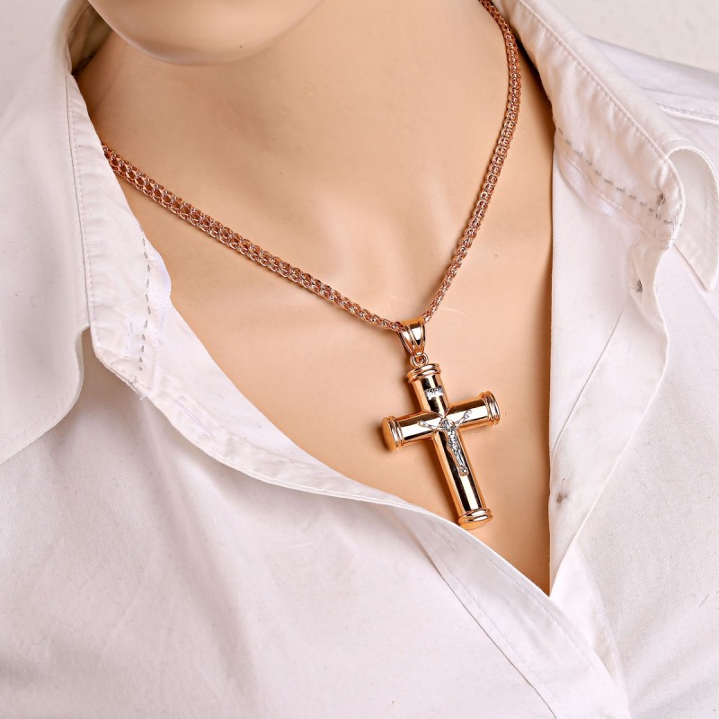Прекрштени привезак са 585 златног ланца. Велики крст је направљен од 585 црвеног злата са телом од 585 белог злата и натписа Инри. На леђима је гравирање "Спреми и Сачувај" (руски: "