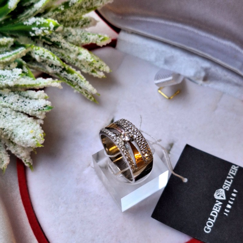 Купите сребрни прстен са златом и цирконијумом. Чудесно деликатан прстен са заносно светлуцавим цирконијумом. Прстен изгледа једноставно и елегантно у прелепом оквиру од 925 сребра са акцентима од 375 ружичастог злата. Ова декорација има мисију да пренесе најсјајнија и највиша осећања свом власнику! Ова невероватна комбинација елеганције, лакоће и индивидуалности даје декорацији посебан шарм и инспирацију.<бр />