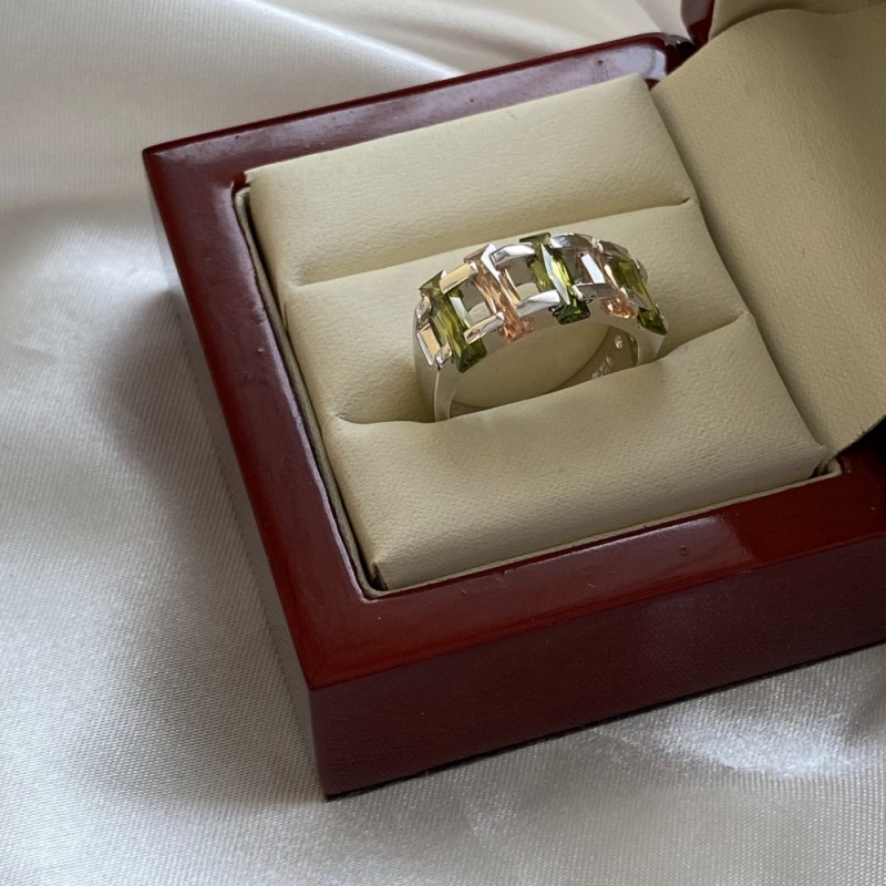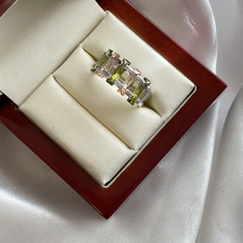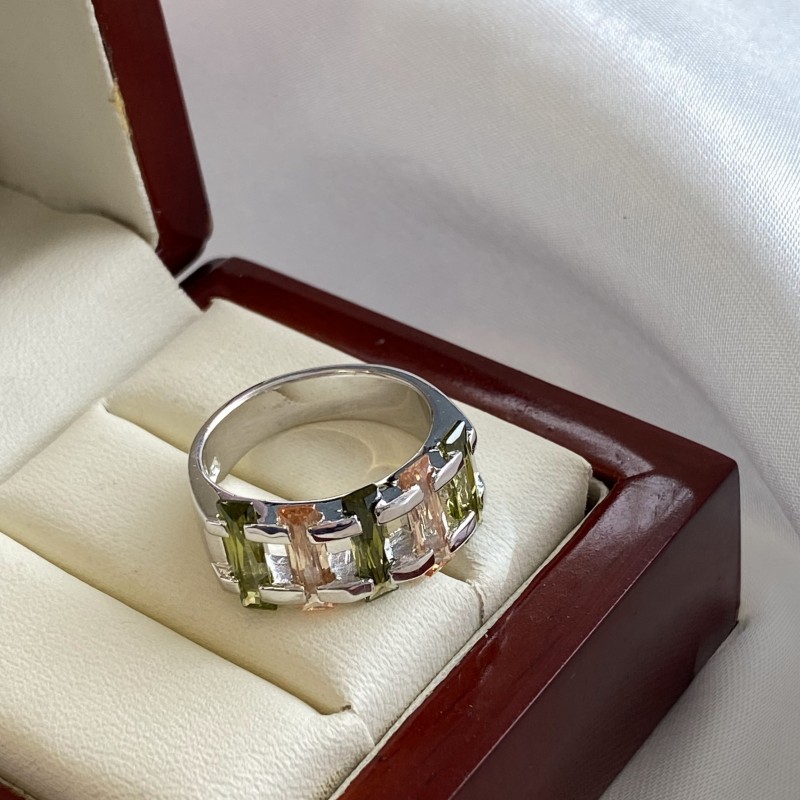 Предиван, луксузан прстен са шармантним светлуцавим великим маслинастозеленим и наранџастим кубним цирконијумима. Прстен изгледа концизно и елегантно у прелепом оквиру од 925 стерлинг сребра, стварајући светлу и живу композицију. Савршено ће нагласити деликатност, шарм и природну лепоту ваших руку! Оригинални дизајн прстена ће одражавати вашу индивидуалност!<бр />