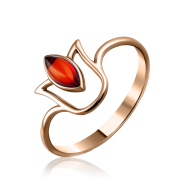 Елегантан прстен од сребра 925, црвено позлаћен, украшен коњак амбером! Прстен ће савршено нагласити нежност, шарм и природност ваше лепоте и скренути пажњу на женственост ваших руку.<бр />