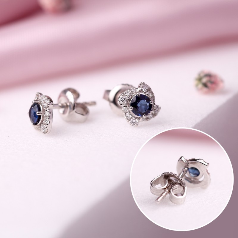 Елегантне минђуше од белог злата Гианни Лаззаро од 750 белог злата са дијамантима и сафирима.<бр />