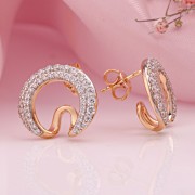 Златне минђуше од 585 цирконија. Ове елегантне минђуше од црвеног злата 585 очаравају својим закривљеним, уметничким обликом, који подсећа на фини, течни потез четкице. Два лука са светлуцавим цирконијумом, додатно оплемењени родијумом, обезбеђују блистав, хладан сјај који је у савршеном контрасту са топлим златом. Преплет светлости, облина и финих материјала даје комаду накита луксузан, романтичан и истовремено модеран изглед.<бр />