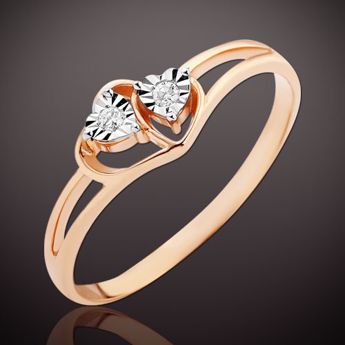Ring gjord av rött/vitt guld 585° dekorerad med 2 briljantslipade diamanter ¢ 1,5 mm 0,03 ct. 17 3/6