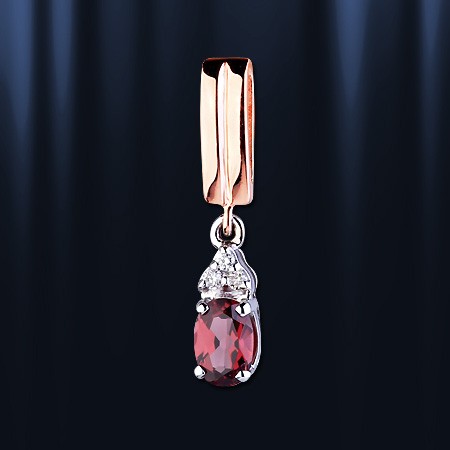 Hängen från det ryska röda/vitt guldet med 3 lysande 0,032 karat och granat 0,111 karat. Guld 585 °. Höjd med en ögla ca.